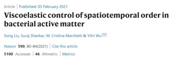 该工作首次在实验上证实材料的流变性质可以用来控制活性物质的自组织。相关结果将促进非平衡物理的发展。微生物在自然界和动物消化道中通常在富含粘弹性高分子的环境中运动。该研究表明,流变力学环境可能影响微生物群落的集体扩散和迁移。