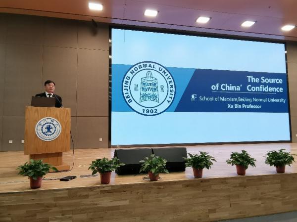 徐斌教授作了题为“中国为什么自信——如何看中国特色社会主义(The Source of China's Confidence:How to Understand Socialism with Chinese Characteristics)”的学术报告。他认为,在迈向全面建设社会主义现代化强国新征程中,中国的自信源自于我们开辟并建构的中国道路、中国理论、中国制度、中国文化以及为世界提供的中国方案,这不仅让我们对历史倍感自豪,更让我们对未来充满期待。