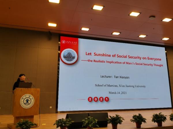樊晓燕副教授作了题为“让社保阳光洒向千家万户——马克思社会保障思想的现实意蕴(Let Sunshine of Social Security on Everyone——Realistic Implication of Marx's Social Security Thought)”的报告。她指出,马克思社会保障思想中蕴含着公平正义的基本理念、政府的社会保障责任以及社会保障发展遵循的基本规律,对中国社会保障制度建设具有重要的启示意义。