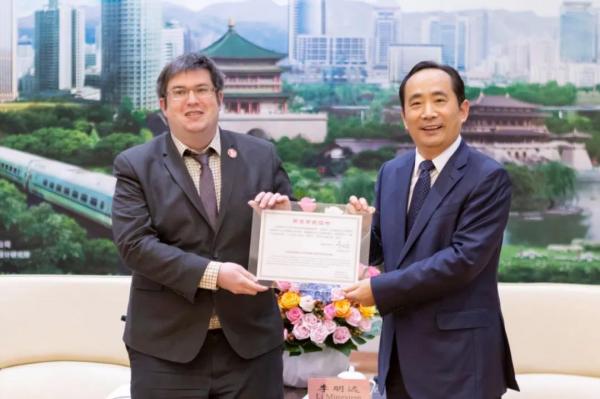 日前,西安市第十六届人民代表大会常务委员会第二十八次和第四十次会议同意授予日本通运株式会社常务执行董事杉山龙雄、我校外国语学院副教授罗宾·史蒂芬·吉尔班克"西安市荣誉市民"称号。3月22日下午,荣誉市民颁证仪式在市政府举行,市长李明远颁奖。市人大副主任薛振虎,市政协副主席、市政府秘书长陈长春,市人大副秘书长张庆东、市外办、国际港务区管委会及我校等相关部门负责人陪同参加仪式。