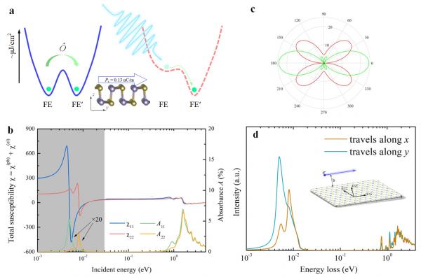 图1 a. 太赫兹光照下铁弹/铁电相能量去简并;b. 各向异性的太赫兹光响应函数;