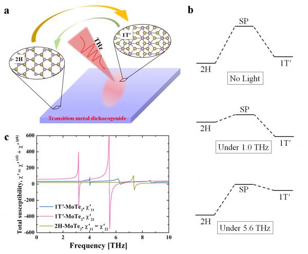 图2 a. 太赫兹光照诱导MoTe2材料的拓扑相变;