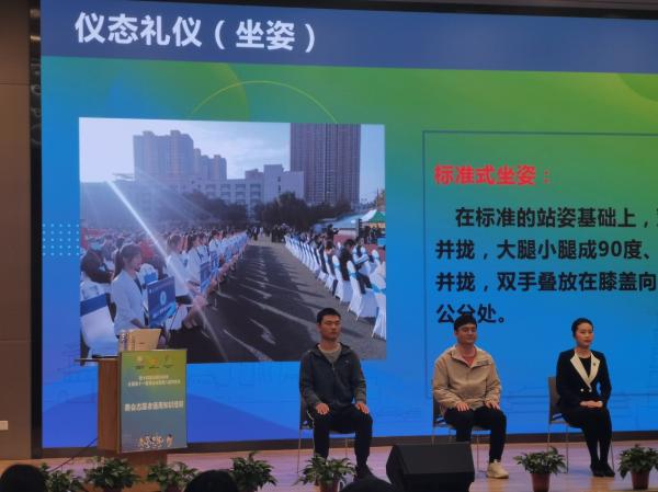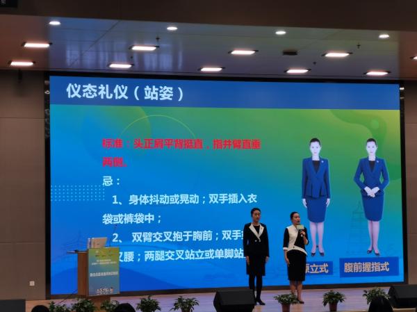中国管理科学研究院学术委员会特约研究员、IPA国际注册礼仪培训师认证管理中心高级礼仪培训师、陕西省礼仪协会高级礼仪培训师黄廷君为大家讲解了赛会礼仪形象训练,仪态礼仪和递接礼仪部分内容由助教老师进行示范,并邀请了4名志愿者上台学习,带领全体志愿者共同学习“引领礼仪”和“握手礼仪”。