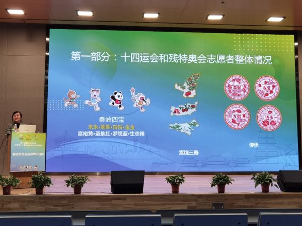 此次培训邀请了具有大型赛事服务经验的资深志愿者和多名相关领域的知名人士,以培养志愿者的综合能力为出发点,围绕全运会、残特奥会常识、志愿者通用政策解读、残疾人服务培训、赛会礼仪形象培训、陕西省情概论、志愿者心理调节、志愿者角色认知与志愿服务概述、赛会应急事件处理与急救技能训练八个专题进行,让每位志愿者全方位了解志愿服务精神,争做一名优秀的“小秦宝”。