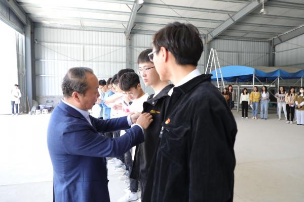 左愿远作为学校党史学习教育第四督导组组长为10名新入党的学生党员代表佩戴了党徽,勉励他们知史爱党、做一名合格的大学生党员,并对此次党课进行点评。他讲到,本次访谈式党课创新活动载体、结合重大科研项目,将机电所长期以来服务先进电子装备的成效以真人实景的方式展示给青年学子,春风化雨、润物无声。同学们要以本次党史学习教育为契机,举一反三,学好“四史”,立志成为新时代“四有”新人。