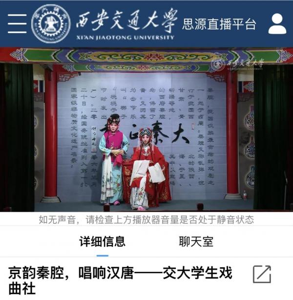 5月29日下午,围绕第45个国际博物馆日“博物馆的未来:恢复与重塑”主题,“京韵秦腔,唱响汉唐”主题专场戏曲演出在西安交通大学博物馆顺利举行。此次演出由交大学生戏曲社策划推出,活动采用线下互动与线上直播的方式,为广大观众送上了一场涵盖秦腔、京剧、越剧等多种戏曲艺术种类的文化盛宴。