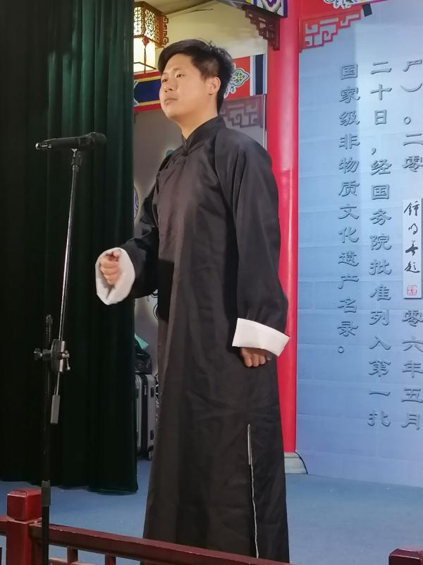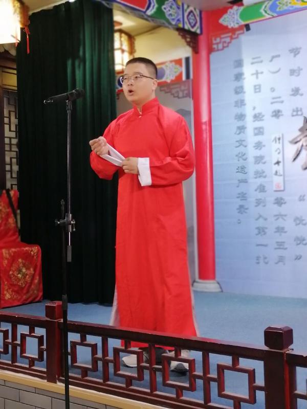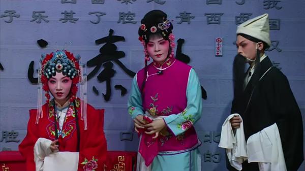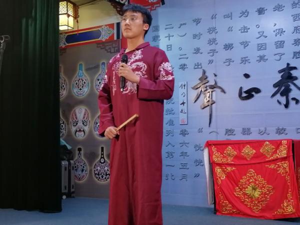 接下来的张旭同学先是献唱了一段传统京剧《沙桥饯别》,其间他与薛良插科打诨似的互动让大家忍俊不禁,之后又表演了秦腔传统戏《三滴血》,其秦韵秦声亲切质朴,也赢得了观众们的一致好评。