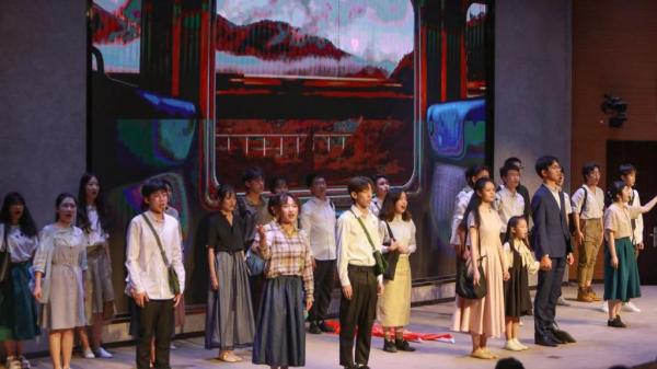 日前,校园原创音乐剧《西迁西迁》在中二1400丝路大讲堂面向全校师生进行了汇报演出。