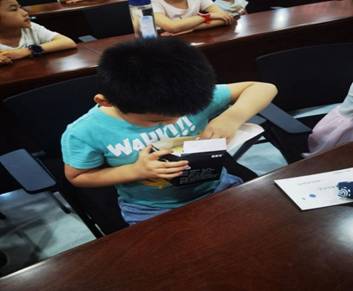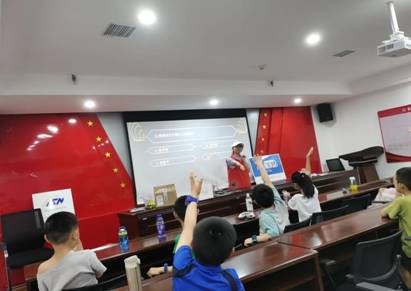 下午14:30活动正式开始,主讲人首先介绍了综合业务网理论及关键技术(ISN)国家重点实验室以及本次活动流程,随后为小朋友们进行黑白分拣机,智能寻迹小车以及声控流水灯等多个科技作品的展示与讲解。展示过程中,小朋友们认真听讲,踊跃提问,并在通院科协学生的帮助引导下亲手实践,实现作品功能。