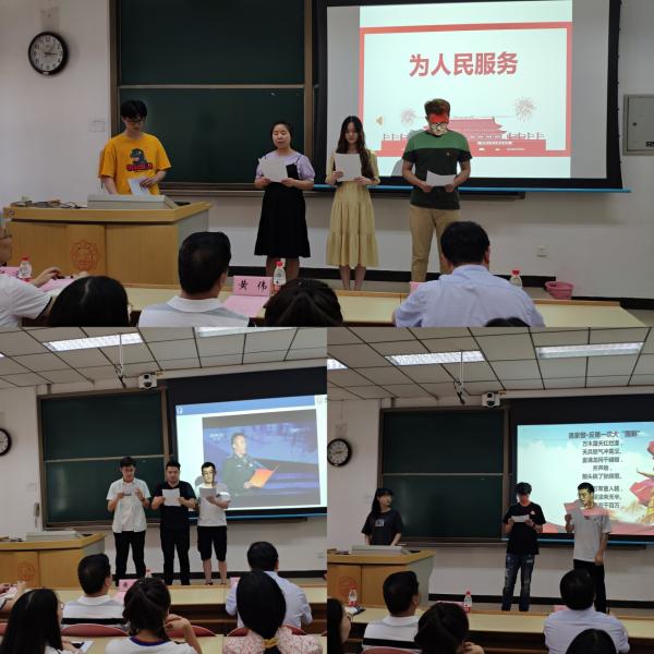 张思德,一个平凡的红军战士,没有彪炳史册的功勋,却在平凡的岗位上发光发热、燃烧自我。他经常主动打扫驻地卫生、铺石垫路、修补窑洞,帮助战友补洗衣服、编草鞋、喂战马、试野草,干好每一件革命工作,真真正正做到为人民服务。不幸的是,张思德在带领队友挖新窑时,遭遇崩塌,为救战友而牺牲。“‘人固有一死,或重于泰山,或轻于鸿毛。’为人民利益而死,就比泰山还重;替法西斯卖力,替剥削人民和压迫人民的人去死,就比鸿毛还轻。张思德同志是为人民利益而死的,他的死是比泰山还要重的。”2018级学生党员深情地为大家朗诵了《为人民服务》。党的百年历史,正是有一批批像张思德一样共产党员前赴后继、鞠躬尽瘁,舍小我、为大家,践行全心全意为人民服务的宗旨,才使我们党始终得到最广大人民群众的拥护。