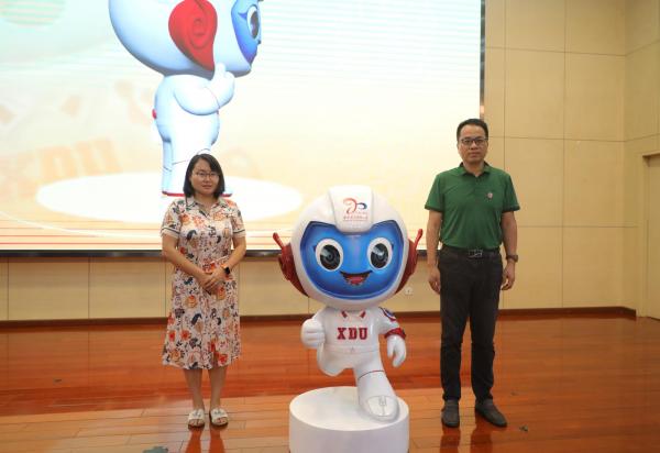 在全场热烈期盼中,石峰与01级校友、陕西校友会副秘书长戴晓梅共同揭开了90周年校庆吉祥物“Ai电”(读作“爱电”)的神秘面纱:一对e形顺风耳、两只雷达屏千里眼,一对鼠标脚、一身航天服,红领章映衬着红五星,臂章上是校徽与“中国芯”……“Ai电”以电子颗粒为元素,化身活泼可爱且富有科技感的电子精灵,浓缩着九秩西电光辉历史,象征着西电人始终与共和国同向同行的坚定决心,诠释着新时代西电面向国家重大需求永怀初心、矢志前行的铮铮誓言。