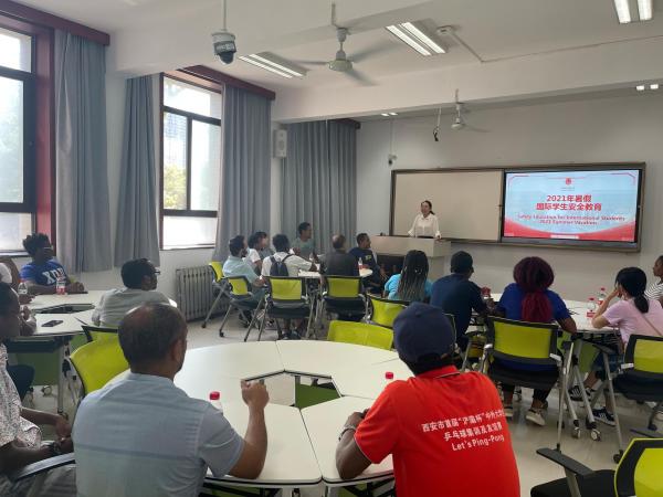 安全教育会。7月24日下午,2021年暑假安全教育会在北校区西大楼举办,国际学生辅导员就当前疫情最新动态、疫情防控要求、个人防护措施、安全用电、安全驾驶、财产安全等方面进行宣讲。