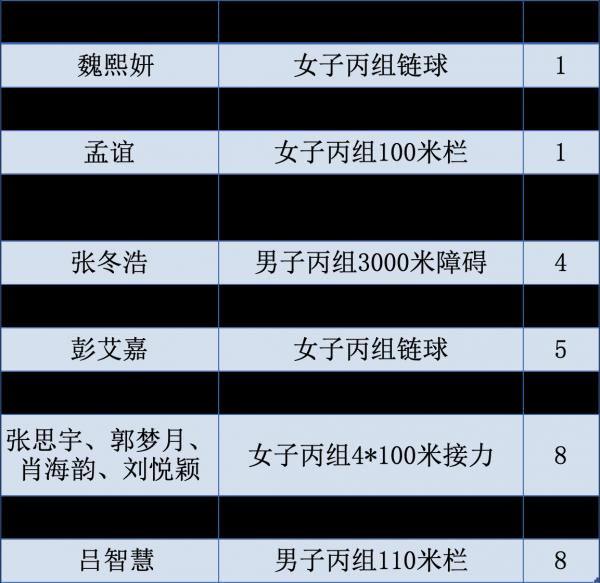 西安交大运动员张冬浩、薛唐麟同学分别在男子丙组3000米障碍、男子丙组链球比赛中取得了第4名的优异成绩。同时,彭艾嘉、赵子涵分别在女子和男子丙组链球决赛中收获第5名。除此之外,张曦文、吕智慧、张思宇等还在跳远、110米栏、4×100米接力的项目中获得第8名。