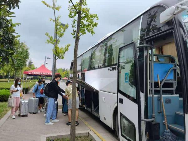 安排“爱心摆渡车”,打通返校“最后一公里”。学校在校门口安排了大巴车和电瓶车,在校门口和宿舍楼间摆渡。“同学们舟车劳顿一定都很累了,有的同学还拉了不少行李,校门口离宿舍比较远,希望能帮他们尽快返回宿舍休息。”已经连续接送学生几十趟的司机师傅说到。同学们到达公寓楼后,宿管工作人员会再次核验学生身份,开展测温、登记工作,确保学生安全有序回到宿舍。