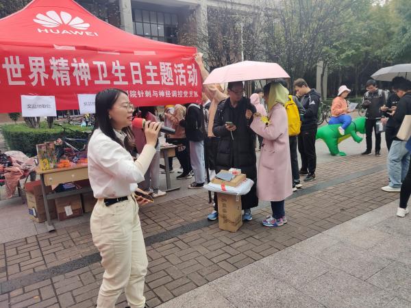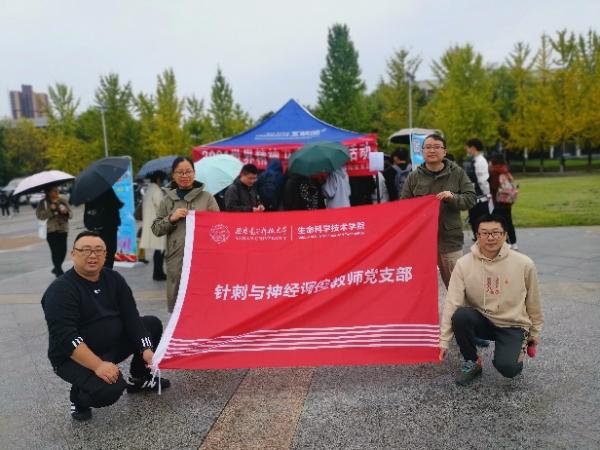 2021年10月15日,生命科学技术学院智能非侵入神经调控研究团队在学院党委的领导和支持下,联合针刺与神经调控教师、研究生党支部,共同发起本次世界精神卫生日主题宣传活动。这也是该支部继今年十月份赴渭南市精卫中心开展科技成果捐赠活动之后,进行的“科研服务社会”第二期系列活动。该系列活动的宗旨是,运用团队科研方向专业知识,反哺社会,为广大群众办实事。