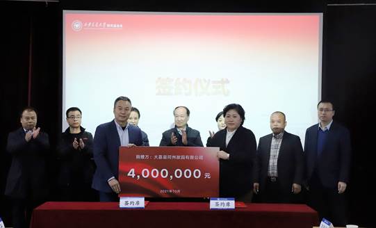 10月20日,大荔县同州故园有限公司捐赠400万元设立西安交通大学“幸福晚年”关爱基金,支持学校做好为老工作,关爱基金及爱老服务捐赠仪式在西安交大离退休活动中心举行。西安交大党委副书记赵昌昌,大荔县同州故园有限公司董事长徐尉军、总经理徐家宝,教育基金会副理事长、秘书长赵卫滨,离退休工作处、规划与基建中心、后勤保障部等部门负责人,离退休教师代表等参加捐赠仪式,仪式由离退休工作处处长申丹主持。