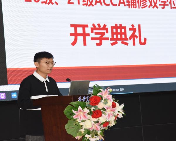 学生代表21级新生张冰雨代表21级ACCA双学位班发言。兴趣使然、期待拓展与提升的初衷让她决定学习ACCA,怀揣热情与梦想更是能够激发学习的潜能。她表示,ACCA学习是人生新的起点,要以此为跳板,像榜样看齐,不断升华;恪守学生准则,共同营造优雅文明的学习环境。知识在于积累,天才在于勤奋,用学习成绩和实践成果检验难忘的岁月,书写无悔青春。