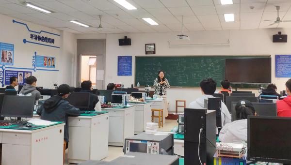 微电子学院实验中心副主任娄永乐带领同学们依次进入半导体物理实验室、半导体工艺检测实验室、半导体器件物理实验室以及EDA技术实验室参观学习,娄老师首先为同学们讲解了基本的半导体物理知识。大一的同学们基本是第一次接触到这些实验设备,也是第一次近距离的观察到示波器、电子显微镜、椭偏仪等半导体实验仪器,大家都表现出了很强的好奇心。随后,娄老师详细耐心的介绍了“星火杯”科技作品竞赛、国家级和省级大学生创新创业训练计划、电子设计竞赛等竞赛,鼓励同学们在学有余力的情况下,积极参加,锻炼创新实践素养,她建议大一积极参与星火杯竞赛,先从较为简单的比赛开始,慢慢找到参加竞赛的感觉。最后,娄老师带领同学们前往微电子学院“众创空间——集成电路工程坊”,近距离的参观了学院的创新实验室,实验室里的学长学姐正在专心致志的准备竞赛,大家深受鼓舞。