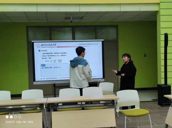 董小娟老师是数学与统计学院的副教授,从事高等数学和概率论与数据统计教学近二十年,研究成果显著。上课前,不少同学拿起电脑开始预习这节课所要讲的内容,提前对所学知识有一个基础的了解,体现了同学们对数学知识与文化的热爱。两点半到了,董小娟老师开始上课。由于课程内容涉及面广,涉及度深,知识体系复杂,老师从条件概率公式的证明出发,突破应试教育的壁垒,在引导同学们对公式有更深入了解的同时尽力使每一个同学跟上教学进度。课堂氛围轻松和谐,有位同学就自己不懂的问题上台问老师,老师给予了耐心地解答。这个问题也使大家共同认识到条件概率与两个事件同时发生的概率的根本区别是样本容量的不同。