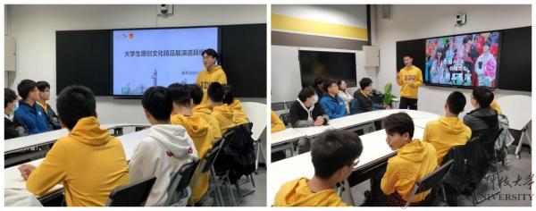参观结束后,道具组负责人王贞理以“热心在幕后付出,悉心为晚会护航”为题,与同学们分享了组织演出的道具工作的难忘经历;大学生艺术团负责人孙博文围绕“一个舞蹈演员的成长”主题,为同学们讲述了自己在展演中为爱而舞、为梦而行的心路成长。