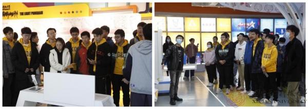 在志愿者与学生讲解员的带领下,同学们依次参观了展厅内的星火杯竞赛长廊、虚拟现实+红色教育VR设备、《时间上的中国共产党》知识图谱长卷以及小将抱枕、雕塑徽章、主楼积木等精美的西电文创产品,于沉浸式体验中感悟西电青年投身创新创业的澎湃热情与青春活力,赓续一代又一代西电人服务国家科技自立自强和重大战略需求的责任担当。