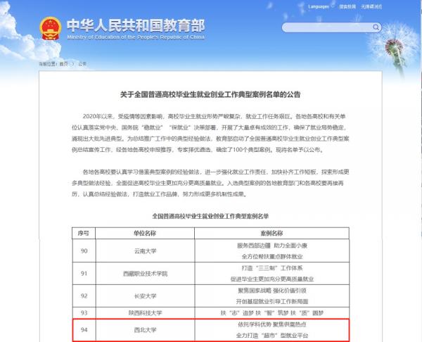 近日,教育部办公厅发布《关于全国普通高等学校毕业生就业创业工作典型案例名单的公告》,我校申报的全力打造“超市”型就业平台工作案例成功入选。
