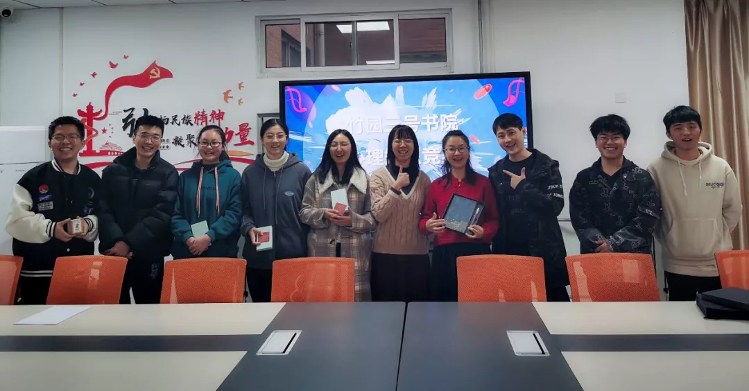 经过激烈的角逐,徐宝繁同学以最高分获得冠军。心理健康教育中心教师丁兰艳和竹园3号书院老师王逸楠分别为本次竞赛的选手颁发证书和奖品,并合影留念。