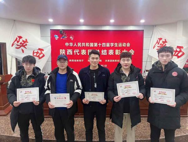 12月3日,中华人民共和国第十四届学生运动会陕西代表团总结表彰大会在西安邮电大学长安校区举行。陕西省教育厅副厅长、代表团副团长刘宝平,陕西省体育局副局长邹军,共青团陕西省委副书记许永胜等领导参加会议,大会全面总结本届学生运动会的参赛工作,表彰在教育部、国家体育总局、共青团中央主办,山东省教育厅、青岛市人民政府承办的中华人民共和国第十四届学生运动会中获得优异成绩的单位和个人。此次比赛体育部侯鹏老师及七名高水平游泳队队员入选陕西省代表团,取得了全国亚军、季军及多项前八名的优异成绩。