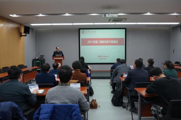 柴渭在总结讲话中强调,十九届六中全会通过的《中共中央关于党的百年奋斗重大成就和历史经验的决议》指出:“党和人民事业发展需要一代代中国共产党人接续奋斗,必须抓好后继有人这个根本大计。”《决议》强调要培养选拔德才兼备、忠诚干净担当的高素质专业化干部。学校开展新任干部培训的主要目的是加强干部政治素质建设,提升干部履职尽责能力,帮助干部尽快转换角色,适应岗位要求,为学校高质量发展贡献力量。他对参训干部提出几点期望:要认真学习十九届六中全会精神,深刻认识中国共产党百年奋斗的历史经验;要守好初心,全身心投入工作,无私奉献,做到忠诚、干净、担当,践行自己对组织的承诺;要加强能力提升,向书本学,从实践中学,更要向先进个人和先进组织学,不断提升能力;要严格要求自己,以身作则,做好表率,真正做到“公平、公正、公开”,积极进行自我革命,发挥党内监督、群众监督,发扬民主,积极调研,广泛听取师生意见。