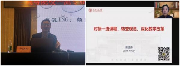 蒋建伟教授作了题为“对标一流课程,转变观念,深化教学改革”的主题报告,结合国家级一流本科课程建设要求,对标推荐条件,详细介绍了课程思政,一流线下、线上、混合课程等建设的关键点,强调要确立“立德树人、学生中心、产出导向、持续改进”的课程理念,以线上线下混合式教学改革为抓手,注重教学设计,促进教学改革,切实提高人才培养质量。