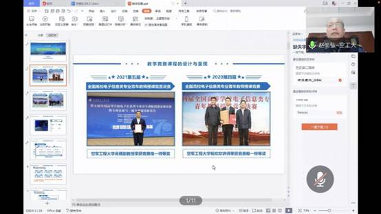 报告中,赵尚弘以空军工程大学教学竞赛获奖引入,细数教学竞赛中遇到的问题,并结合具体指导教学竞赛的经历,对教学竞赛课程的设计组成,课程引入方法,课程推进和结尾进行示范讲解。