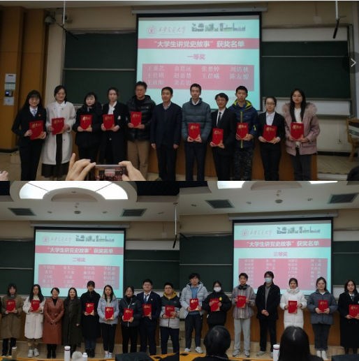 在课堂和班级讲述党史故事的基础上,教师评选、推荐党史故事讲述优秀学生参加“大学生讲党史故事”展示活动。经过师生在展示准备阶段的精心打磨,在展示活动现场,参赛选手们以生动的语言讲述了一个个优秀共产党员的故事,让在场师生深切感悟共产党人为人民谋幸福、为中华民族谋复兴的初心与使命。经过展示和评选,最后评选出一二三等奖,颁发获奖证书。