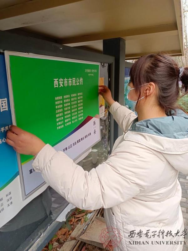 在西一路街道党群服务中心,书院学生在社区工作人员的带领下开展卫生清理工作,大家分工协作,女同学主要负责清理花坛落叶,男同学负责物资搬运并与女同学一道清理卫生死角,期间,保洁员给予耐心指导,加快了清理进度。随后书院学生来到兴乐社区进行标语和横幅的粘贴悬挂。天气寒冷,但同学们的热情似火干劲足,经过近三个小时的认真劳作,大家圆满完成任务并得到社区工作人员的认可。