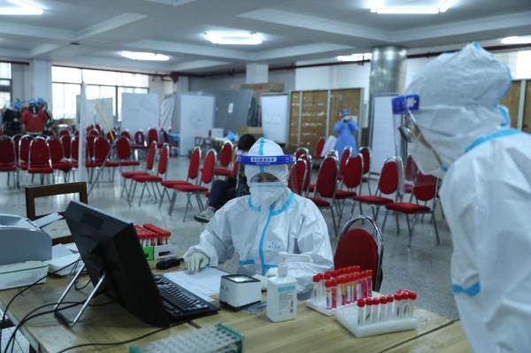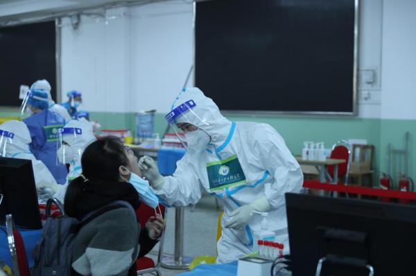 22日晚,接到学校通知后,口腔医院主动申请,增援兴庆校区师生核酸检测工作,与校医院医护人员共同战斗。半小时内,口腔医院迅速组建起一支由24人组成的核酸检测队伍。12月23日,西安市启动第五轮核酸检测。23日早上8时,口腔医院核酸检测队伍来到兴庆校区,他们负责的11个检测点与校医院负责的点位同步启动,有条不紊地开展检测工作。