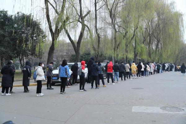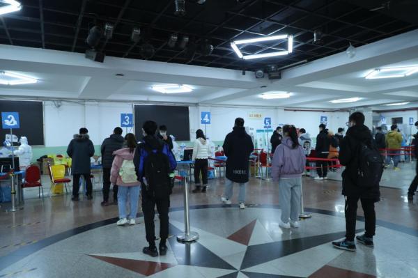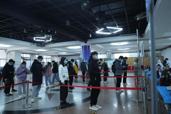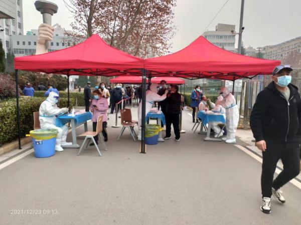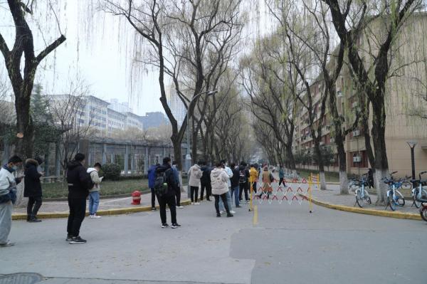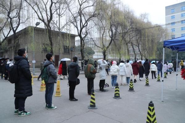 12月23日,西安市开始第五轮核酸检测。参加检测的师生自觉按照一米线排队受测,等待时,有的同学拿出书和笔记复习,现场秩序井然,核酸检测快速高效。目前,全校多个校区均已完成全员核酸检测。