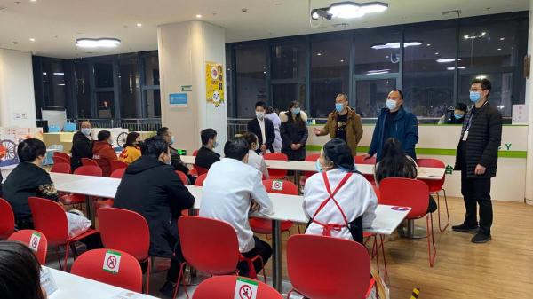 创新港综合管理服务中心连夜召开紧急会议,部署工作,安排物业、餐饮、能源等后勤保障人员港内住宿,保障创新港后勤服务正常运行。