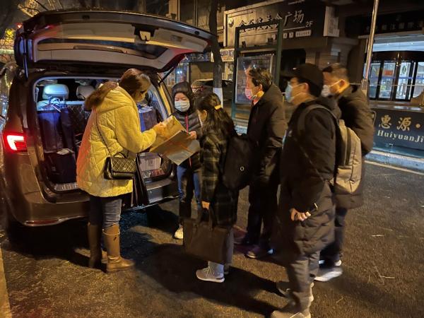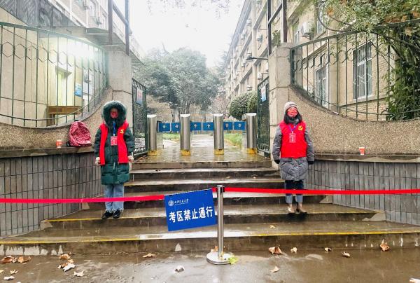 文治书院西18-323宿舍的李婉婷、庞应冉、李青卓、刘薇四名党员积极参与了考研第一天上午的志愿服务。凌晨5点半,四人穿上厚棉袄、戴上围巾帽子、拿着雨伞便赶往集合点领取工作任务,在规定的站点为外校考研学子们指路和核验健康码。“沿着这条路直走大概5分钟就是西二楼”,刘薇站在路口为考生们一遍遍指引考场方向。“我们做志愿者帮助考试的学长学姐,同样也有志愿队长和老师们来来回回为我们提供暖宝宝、热水袋还有姜汁可乐,时刻关心着我们的身体健康。任风雪再大,也盖不住交大人的温情。”李婉婷感动地说。
