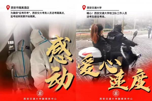 为众人抱薪者,必为交大所铭记!您用大爱真情诠释着平凡人令人不平凡的感动。当支援、保障顺利考研的“集结号”吹响,各级党团组织发出倡议,广大党员干部、后勤保障人员、安保人员、医护人员、青年学子迅速响应。是考试前,各单位昼夜奋战彻夜亮起的灯,统筹谋划,高效落实;是夜色朦胧里,奔赴隔离考场送考老师毅然的身影,拉起行李,微笑挥手;是凌晨5时30分,安保人员、学生志愿者雪中站岗的笑容,细致耐心,热情服务。每一个平凡者的瞬间汇聚成不平凡的时空记忆,必将在交大发展历史上留下宝贵印记。