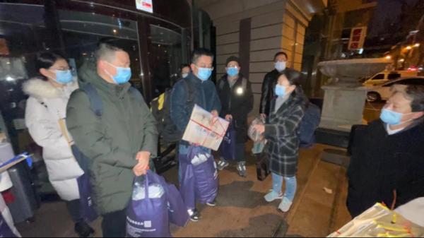 二附院负责7名酒店隔离学生的送考任务。院党委书记巩守平、院长李宗芳、党委副书记滕文葆全程关注考生研考安排进程,学工部收集各类考生信息,做好归纳整理,14名监考老师、20多名考务工作人员连日奋战,为7名学生安排了隔离送考服务。筹备考务工作的那几天,深夜11时,老师们还在忙着统计、核准考生信息;凌晨2时,监考老师反复测试要带进考场的装备。考试当天,清晨6时,考务老师对接考试物资、核查考卷;清晨7时,全体考官在风雪中准时集结……这些平日里救死扶伤的医疗工作者、医学教育人,在疫情之下的研考中,也是一个个骁勇的战士,一名名支持教学、热爱学生的好老师!