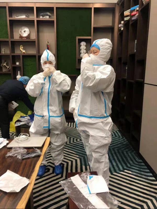 穿上防护服,深入隔离酒店监考是一种怎样的体验?汪老师说,穿过防护服,就更敬佩“大白”们了,他们真的太辛苦了。“穿着防护服只感到透不过气的那种闷,水汽打湿口罩和面罩,视线会变得模糊,还有一种缺氧、整个人反应变慢的感觉,到了下午,我几乎看不清和我一起监考的孙卫老师了。”成为“大白”监考的独特经历,已深深镌刻在28位监考老师脑海中。