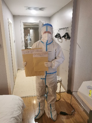 在监考过程中发生的一个“插曲”更让他们的精神高度紧张:同一隔离酒店有一位外校监考老师口罩脱落,将自己暴露在污染的环境里,按医护人员要求立刻终止监考,并就地隔离14天。直到两天的监考任务圆满完成后,他们紧张的心情才稍有缓解,他们笑着说:“通过这次任务,切身体会到基层党员和医护人员的辛苦与付出,希望大家严格遵守防疫规定,众志成城,共克时艰,携手打赢这场疫情防控攻坚战!”