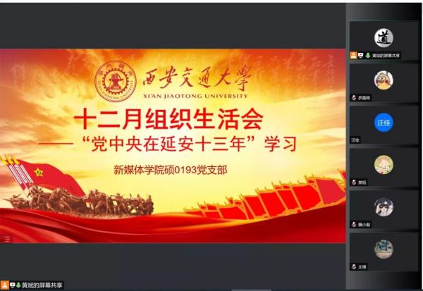 12月23日,参加线上党支部组织生活会的周春燕同学说:“我是一名新闻与新媒体学院的研究生,在疫情期间,我们支部学习了党中央在延安十三年的历史,并且围绕‘党员能为疫情防控做些什么’的主题展开积极交流。面对疫情,看到同学们迅速集结成储备志愿者大军,我深受触动,大家都在想尽办法为学校——这个我们共同的学习生活的家园贡献一份力量,我相信只要我们心往一处想,劲往一处使,就一定能够打赢这场战役!”