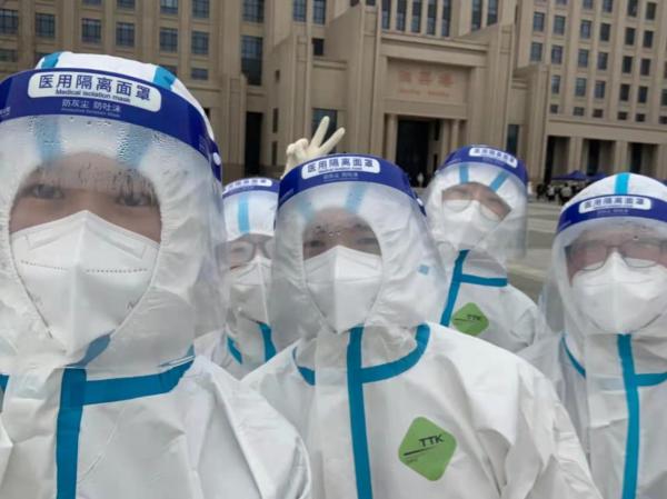 12月27日,一群化身为“大白”的志愿者说:“我们是来自仁心医疗志愿服务队的邓玉皎、田鹏、梁冬鑫、梁佳林、高佳阳。今天,我们征得学院和学校的同意,穿上防护服,投身创新港学生核酸采集工作以及现场秩序维护工作中。虽然今天寒风刺骨,但是想到能为疫情防控尽自己的一点力量,我们的心里却是暖暖的。如果还有下一次,我们还是会义无反顾地第一个冲向战场,因为我是党员,我先上!”