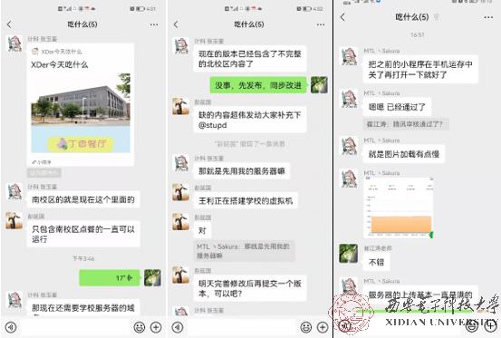 针对小程序运行之初,访问带宽受限、并行处理能力弱、小程序发布审核时间久等问题,计算机科学与技术学院崔江涛教授、彭延国副教授带领研究生一起帮助张玉鉴加班加点提供解决方案,设计了支持高并发的部署方案,统筹协调计算中心开辟了专用虚拟服务器资源,争分夺秒完成了应用迁移,同时联系腾讯公司加速小程序审核,确保了“XDer今天吃什么”小程序及时发布。目前云选餐服务可以正常使用,后续将根据同学们的建议进一步完善相关功能。