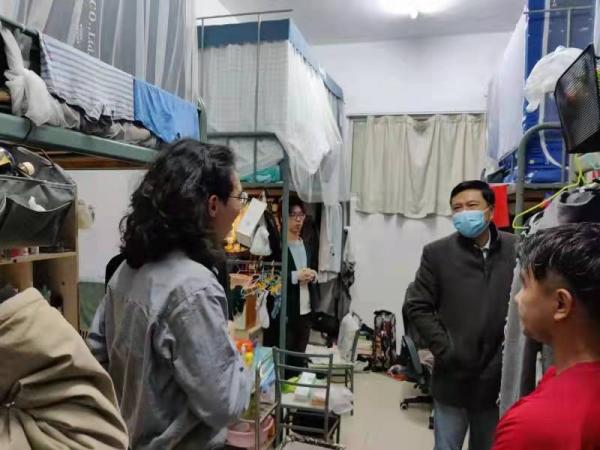 在海棠5、6、7号楼和续建5号楼学生宿舍楼,石峰走访学生宿舍,亲切询问热水供应、餐饮保障等生活问题,慰问持续奋战在一线的学工干部。他强调,全校师生上下一心、众志成城,必将战胜疫情。