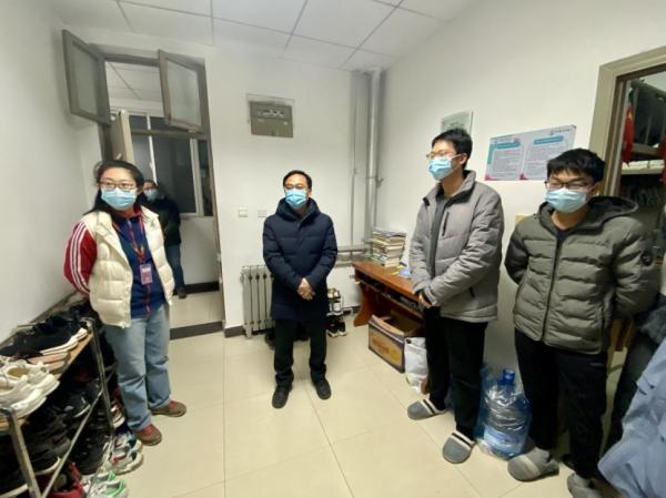 12月31日,从晚上8时持续到12时许,由校党委书记查显友同志带队,全体校领导分别在南北校区,走访慰问学生,向同学们送上新年祝福,坚定广大师生抗“疫”必胜信心。