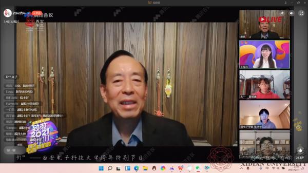 院士、大咖同框对话,凝聚奋进前行力量。中国科学院院士、电子机械工程专家段宝岩教授通过视频送来新年祝福,他指出,希望每一位同学要宁心静气,共克时艰,助力古城打好疫情阻击战。一是防控无小事,自律顾大局。要争做自我防控的模范为学校的防疫工作出一份力、尽一份责。二是临危应百变,思定谋远虑。要以更好的心态、更高的境界、更大的格局看待、对待疫情,沉淀自我,提升自我。三是静习岁月好,常怀感恩心。要向奋斗在一线的工作者与志愿者致敬、学习。