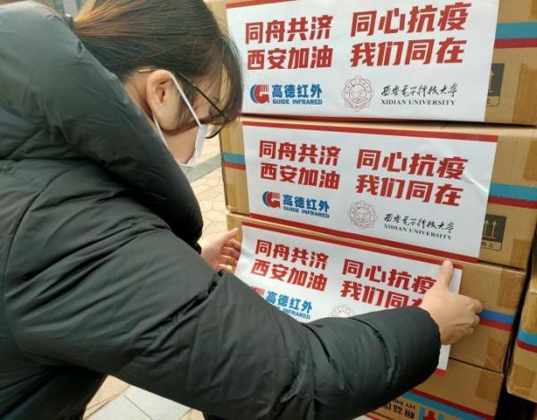 “人间有爱,可至春秋”。西安疫情爆发之后,各用人单位第一时间给予防疫物资上的援助,迈瑞医疗为西电援助100个护目镜,100套防护服,体温枪100把,口罩10000个、洗手液100瓶、消毒液100瓶、酒精200瓶;比亚迪援助120个防疫套装包;武汉高等红外援助2万只口罩,500瓶消毒凝胶。
