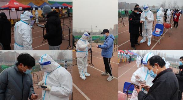 1月4日早晨8点,27名志愿者全部按时到达北操场指定地点进行准备工作。经过医护工作人员的细心培训和指导,志愿者很快进入状态,全副武装投入工作,与医护工作人员默契配合,开始了一天的核酸检测任务。