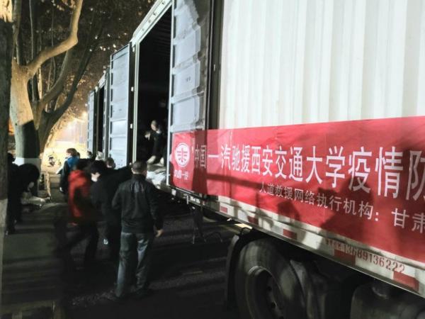 除了防疫物品,学校对生活物资的需求也极为迫切。在得知消息后,中国一汽集团紧急展开行动,迅速筹集了米、面、油等生活物资共计120吨,并于1月1日晚9时许将物资顺利运抵兴庆校区。心怀感恩,共担风雨,中国一汽集团的慷慨解囊为学校师生的正常生活提供了有力保障,也极大地鼓舞了大家抗击疫情的决心。